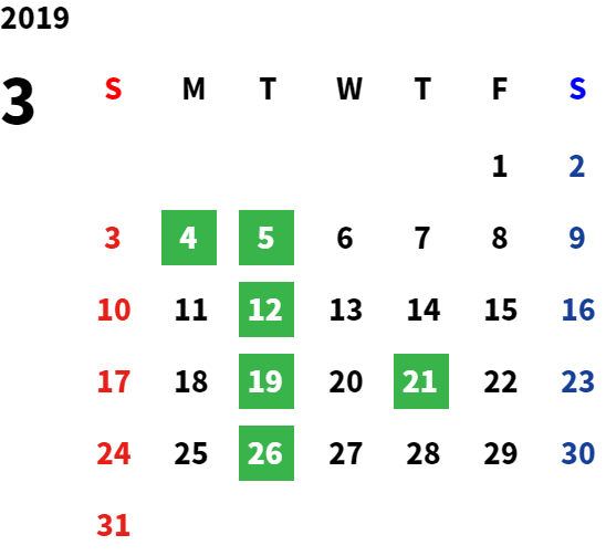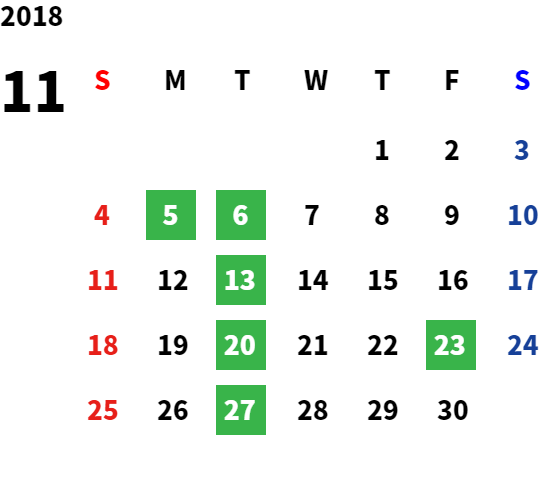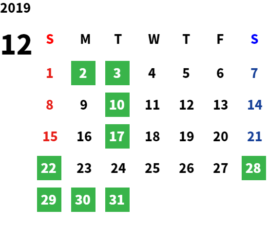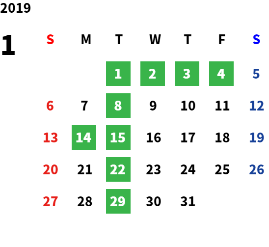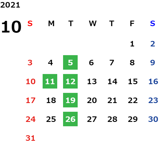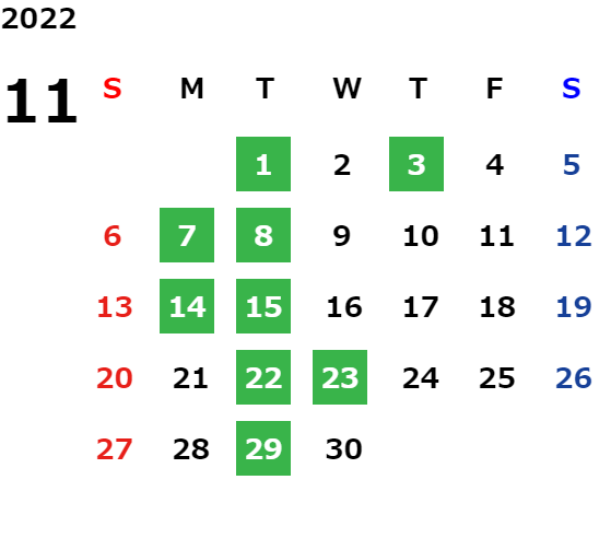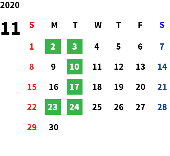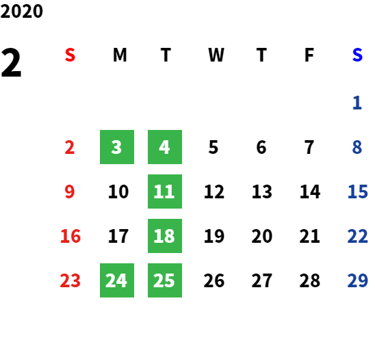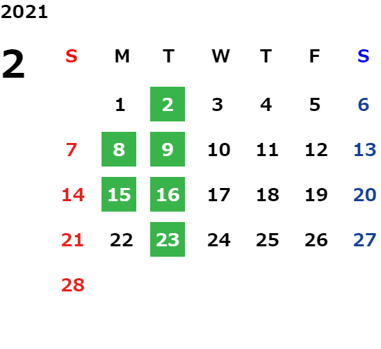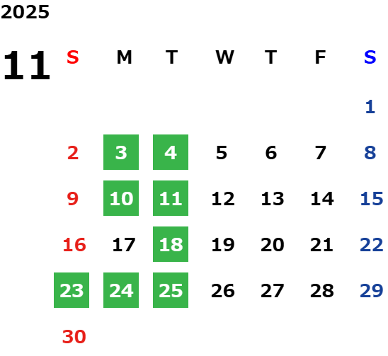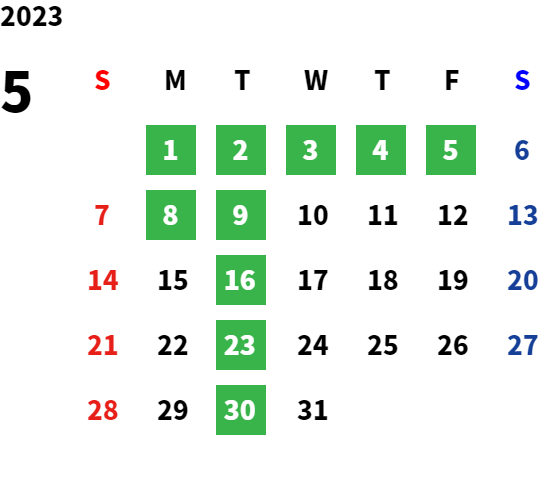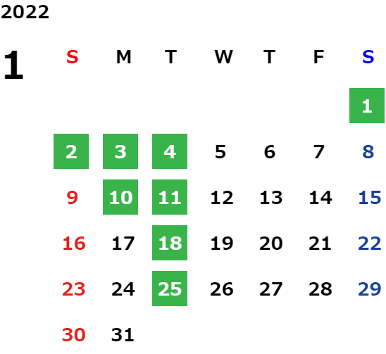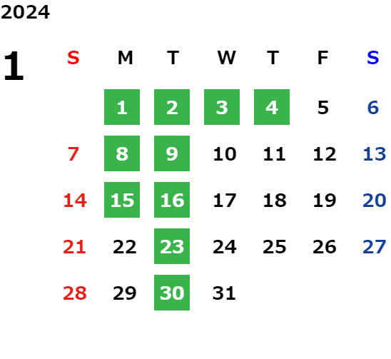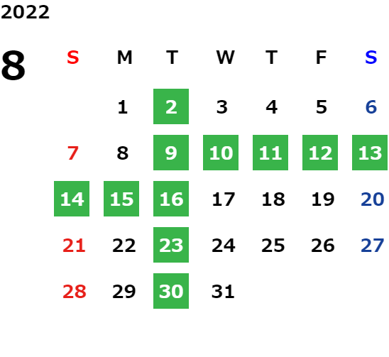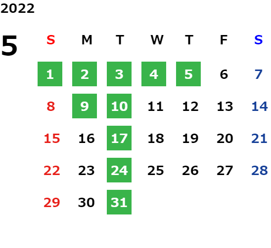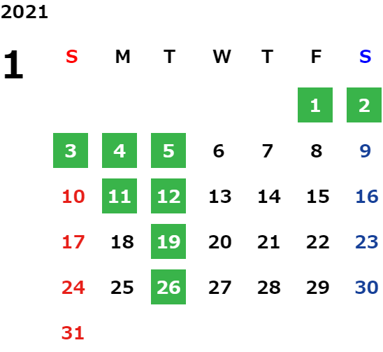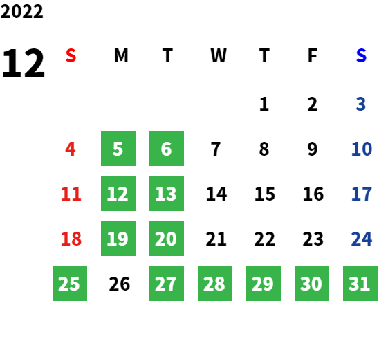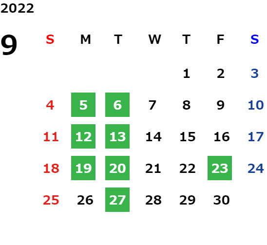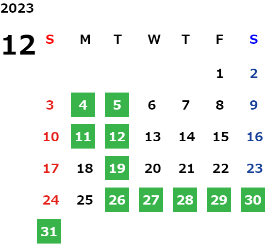 営業日カレンダー