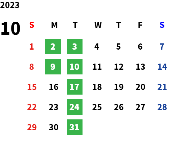火曜日及び一部月曜日