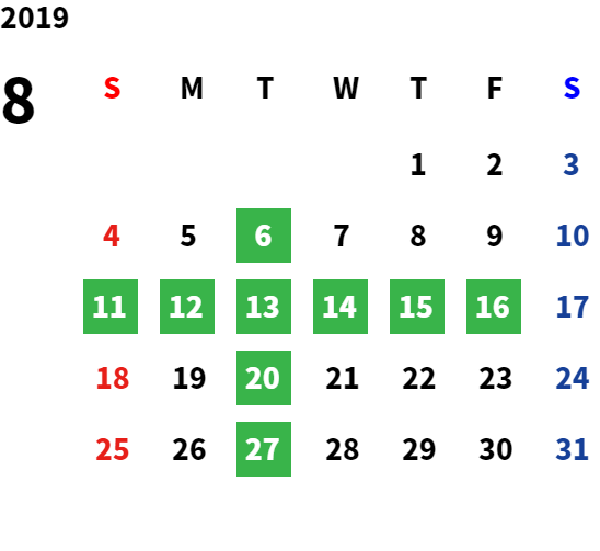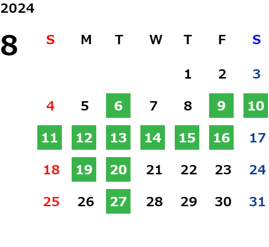 GW、夏期(お盆)、年末年始